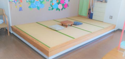 ご利用者様がゆったりと腰かけてくつろいだり、お昼寝をしたりできるように畳スペースがあります。